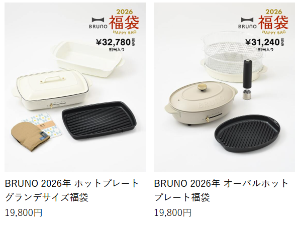 BRUNO online(ブルーノオンライン)では、年末年始に福袋を販売しています。