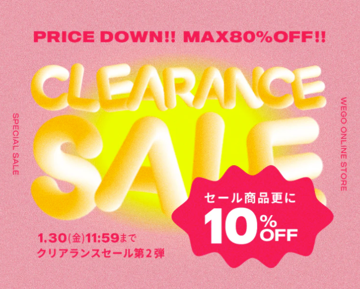 WEGO(ウィゴー)はシーズンを通してセールを開催していますが、なかでもクリアランスセールは特に割引率が高く、お得なので注目です。